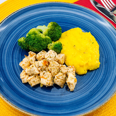 (31) Filé de Frango Grelhado, Cebola Caramelizada, Arroz, Feijão carioquinha e Abobrinha